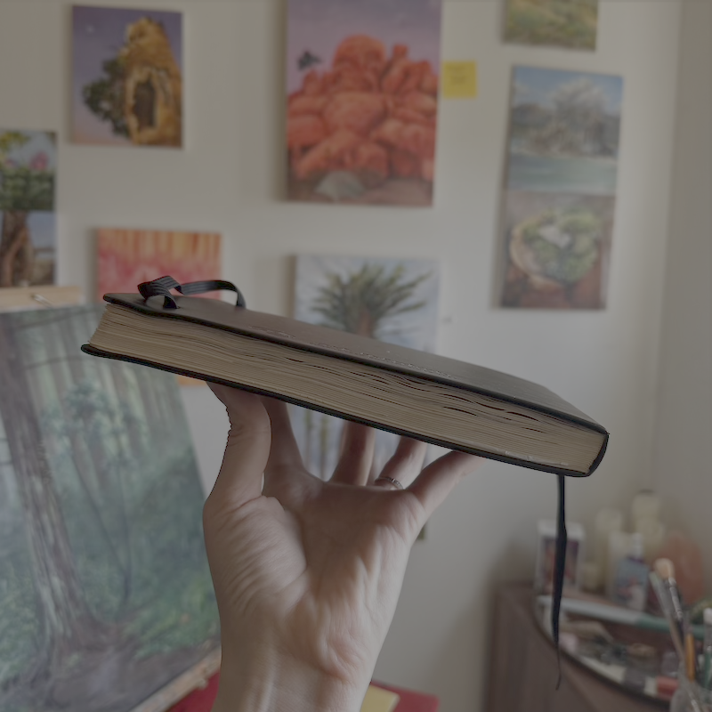 holding my sketchbook upside-down so you can witness the pages buckling in the latter half
