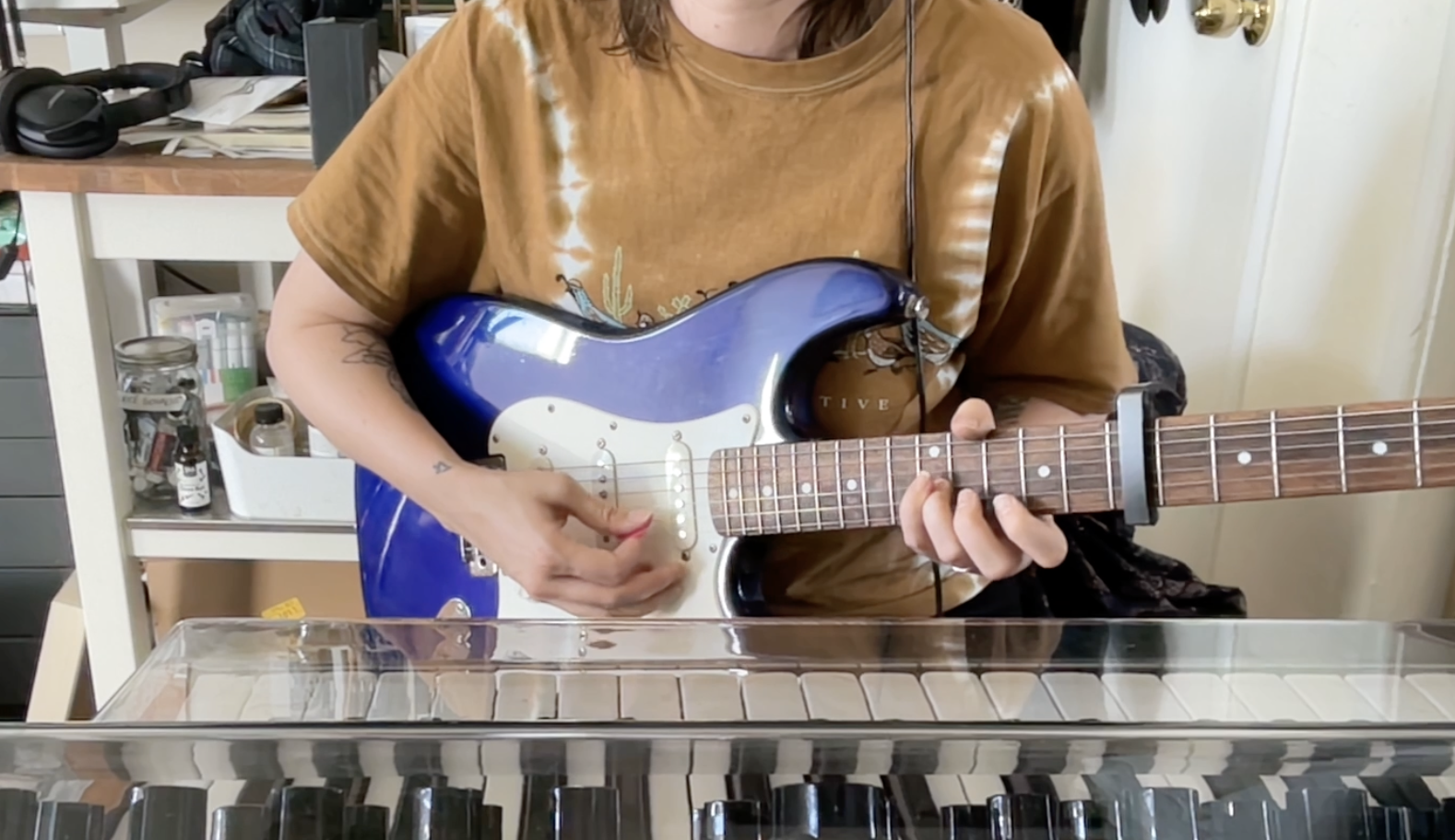 energy level: 4 / 5 left my own studio space to start working on collaborating with, and playing alongside other musicians. What was supposed to be a clothes mending brunch turned into a jam session with friends. Playing music as a collaborative effort is truly liberating and joyful.