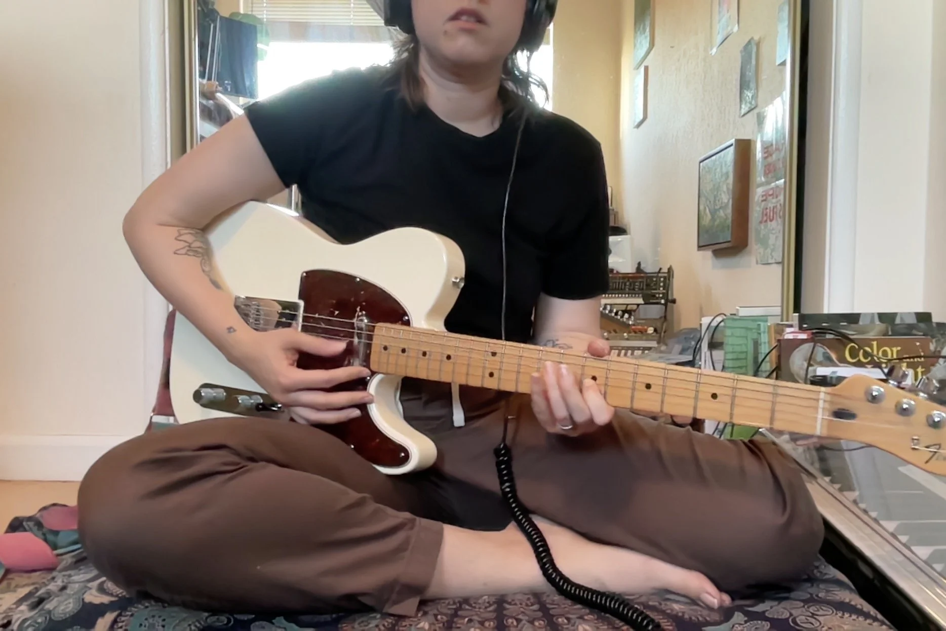 feeling: inspired to write my own things, attempt to play guitar in ways that i thought wasn’t still possible. its really wild how playing instruments is so bodily/embodied. simply not playing for years does not mean that my body has forgotten how to do this. its also such a beautiful practice of checking myself and my ego at the floor pillow. i cannot think about other things while im playing, i have to feel completely present in this moment with no other thoughts, just sitting in the river of the song.
