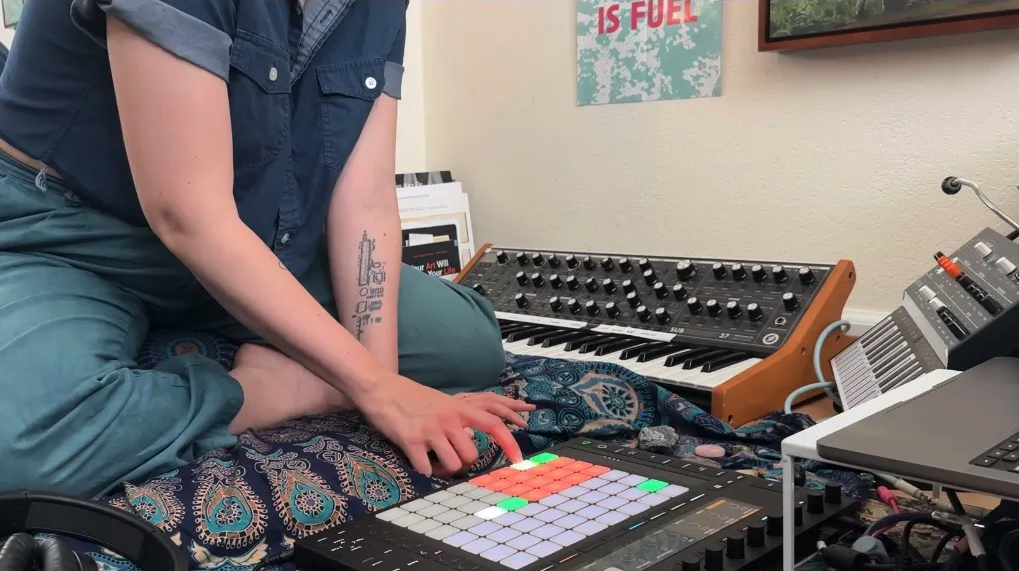 energy level: 5 / 5 chronic pain flare ups in my spine were keeping me from showing up to the meditation cushion. I could only sit to make music for a maximum of an hour at a time. And despite the setup feeling really magical, it made my body upset. So, on my day of rest, it was time to rebuild the music studio. Took an old set of drawers, added plywood shelves, and set everything up so that I could use my neurodivergent chair. I can kneel! I can sit cross-legged! I can sit like I’m in an office all ergonomic like. Most importantly, I can stand while I play.