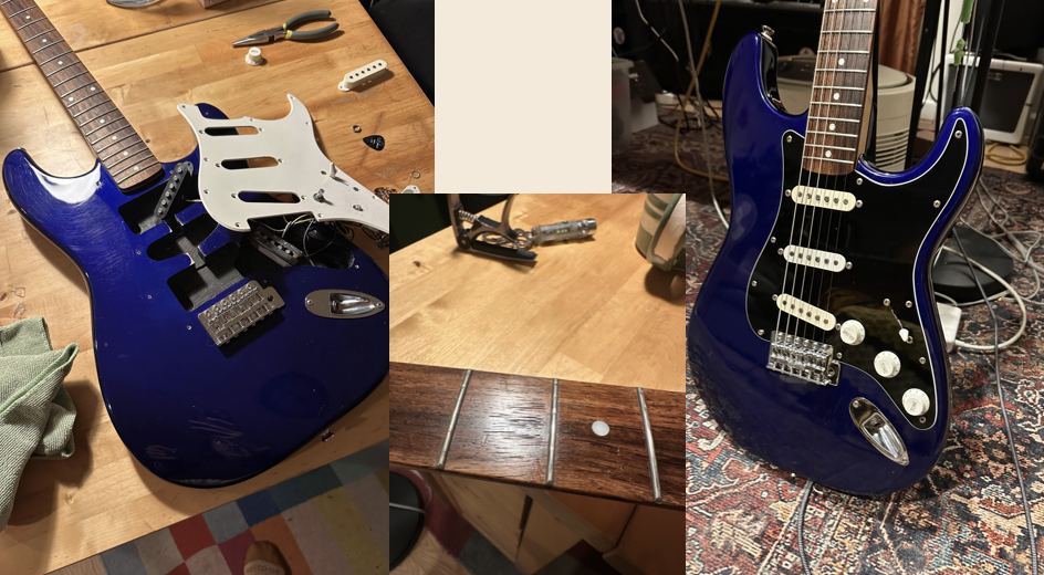 energy level: 5 / 5 I took my first guitar apart today. It was beautiful being able to witness the way my hands have shaped the frets, learn to more deeply adjust the sound and settings, and honor the object that helped me make music in the first place